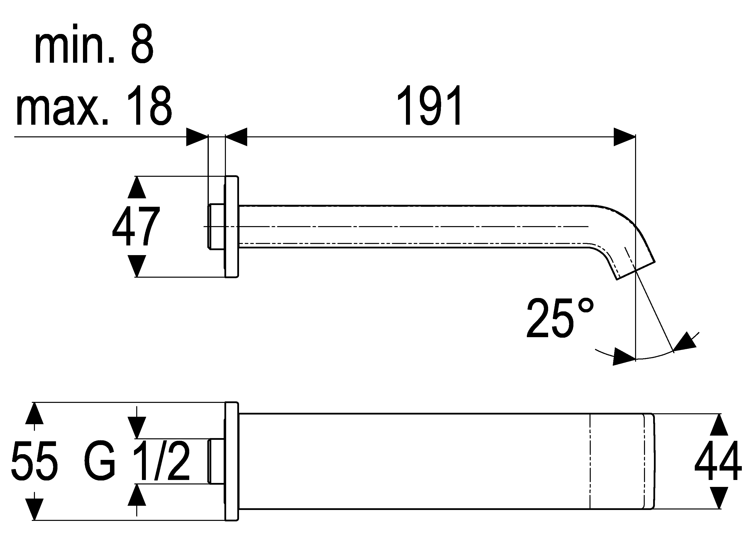 - reach 190 mm