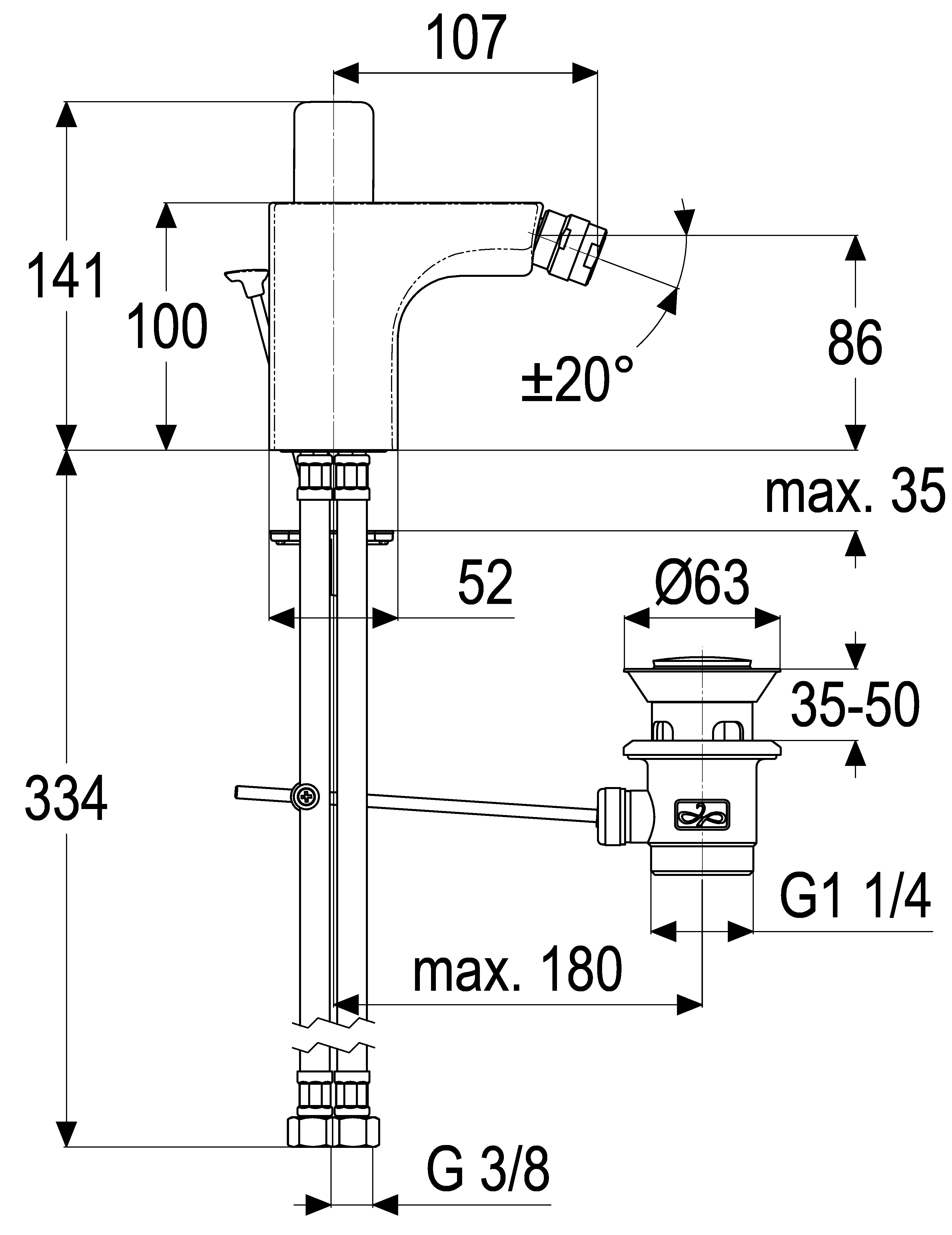 - height to aerator 85 mm