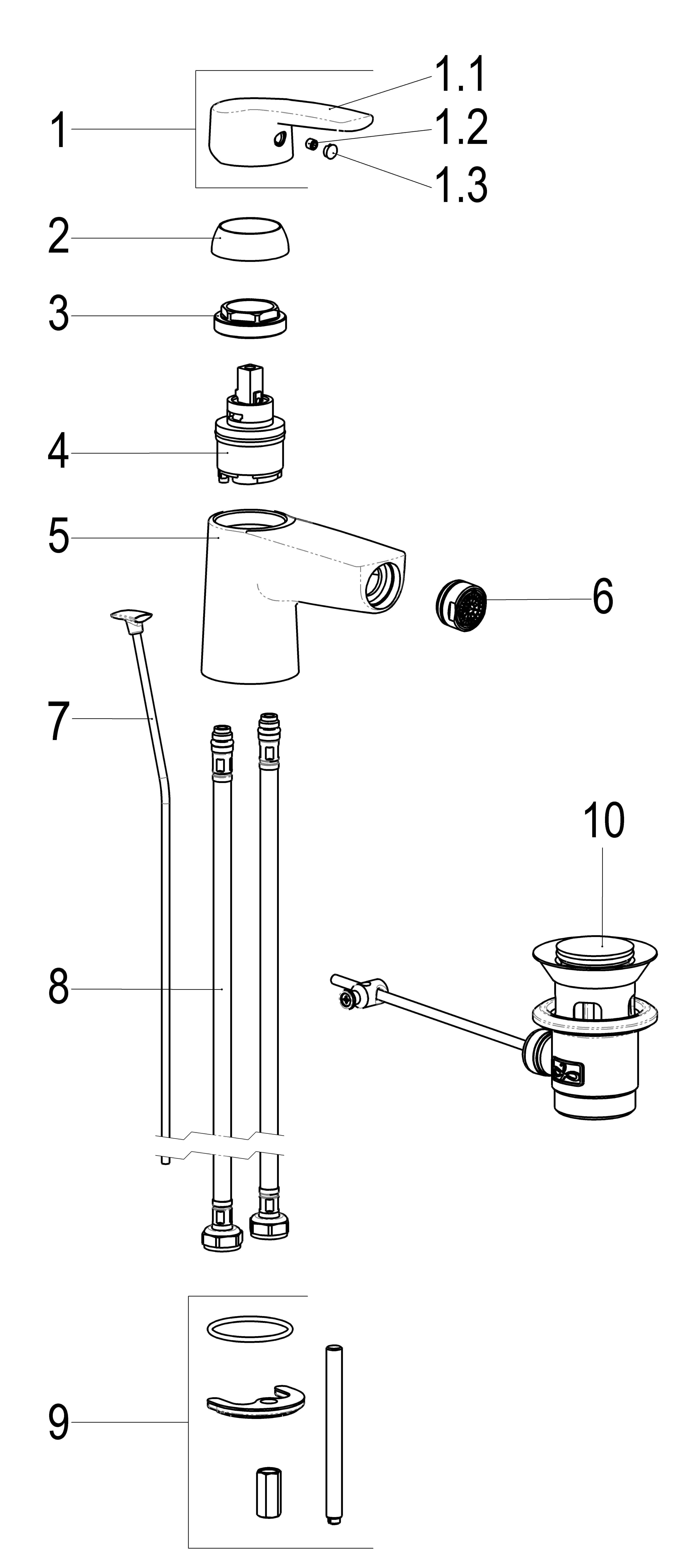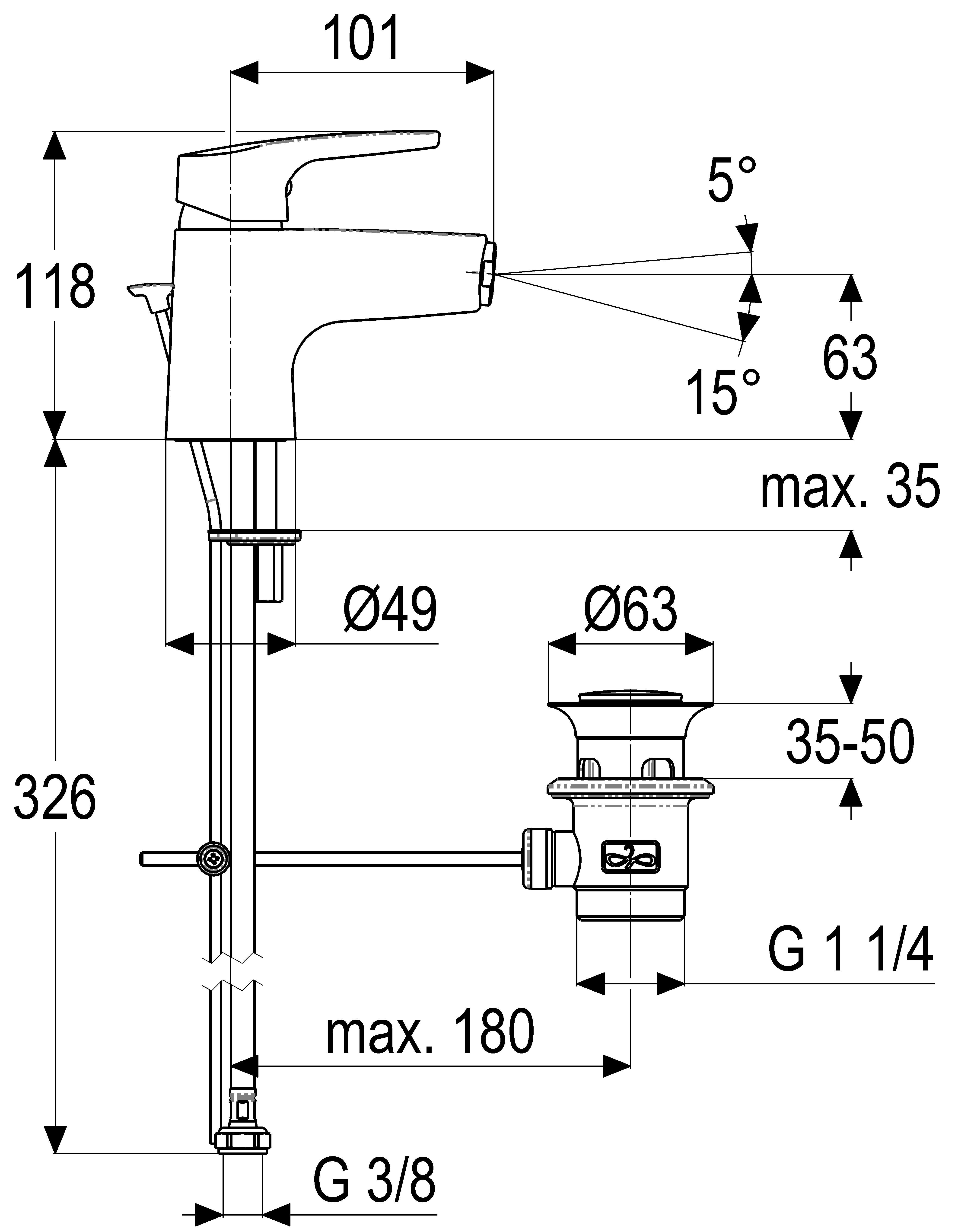 • with pop-up waste 1 1/4"