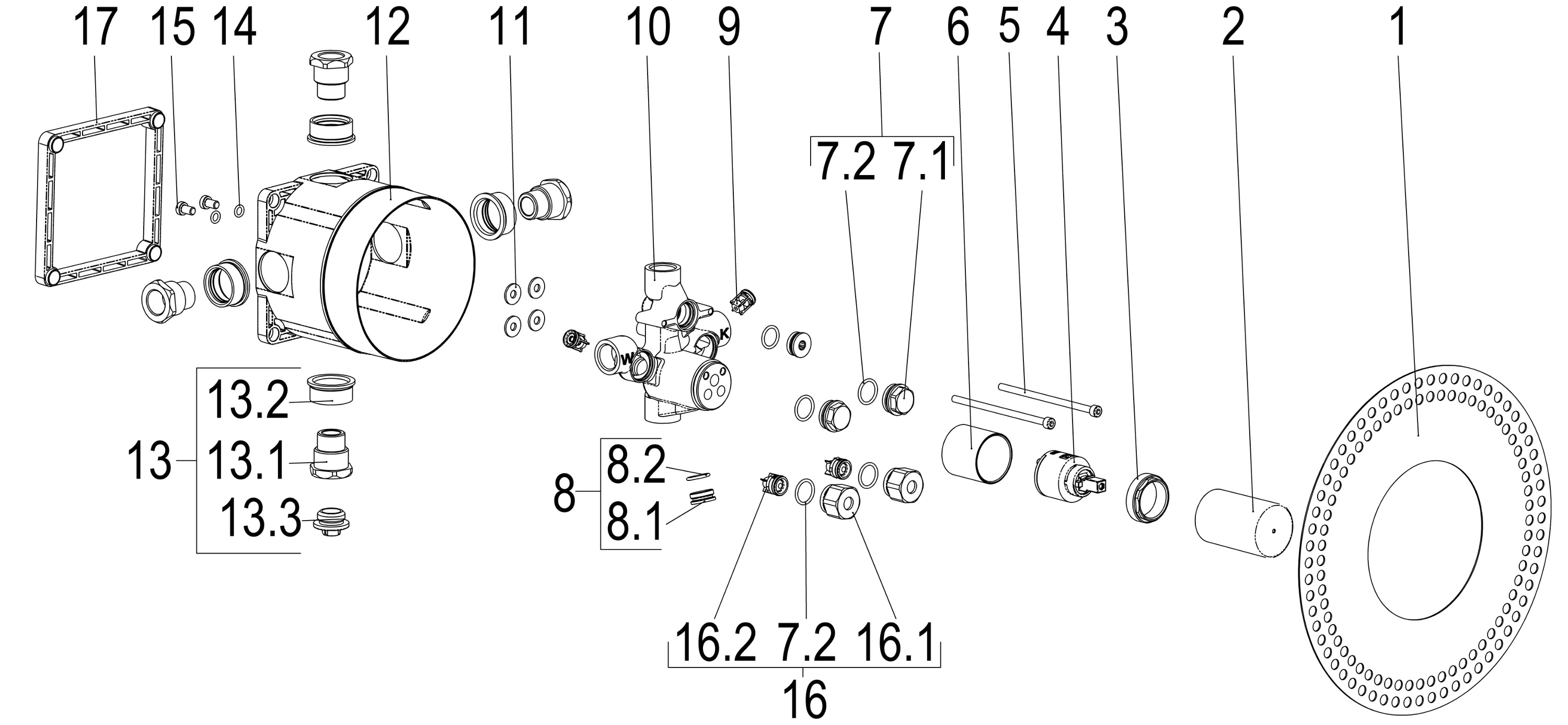 - suitable for conc. bath and shower mixer