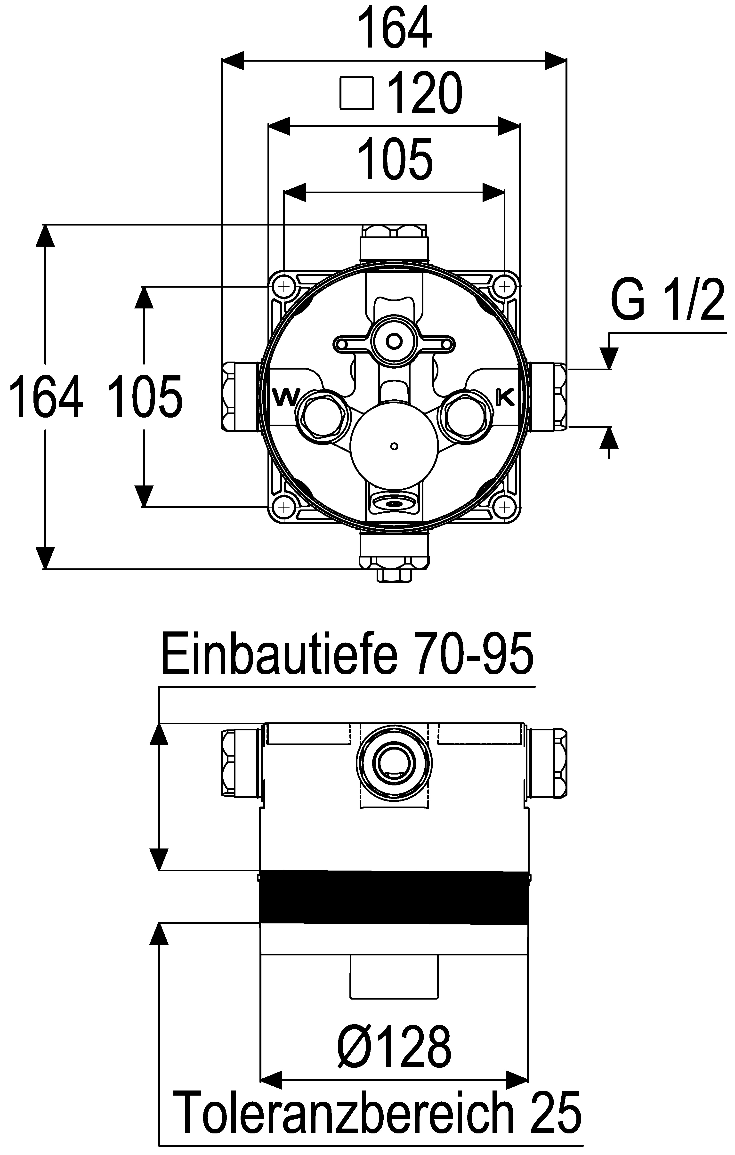 - installation depth 70-95 mm