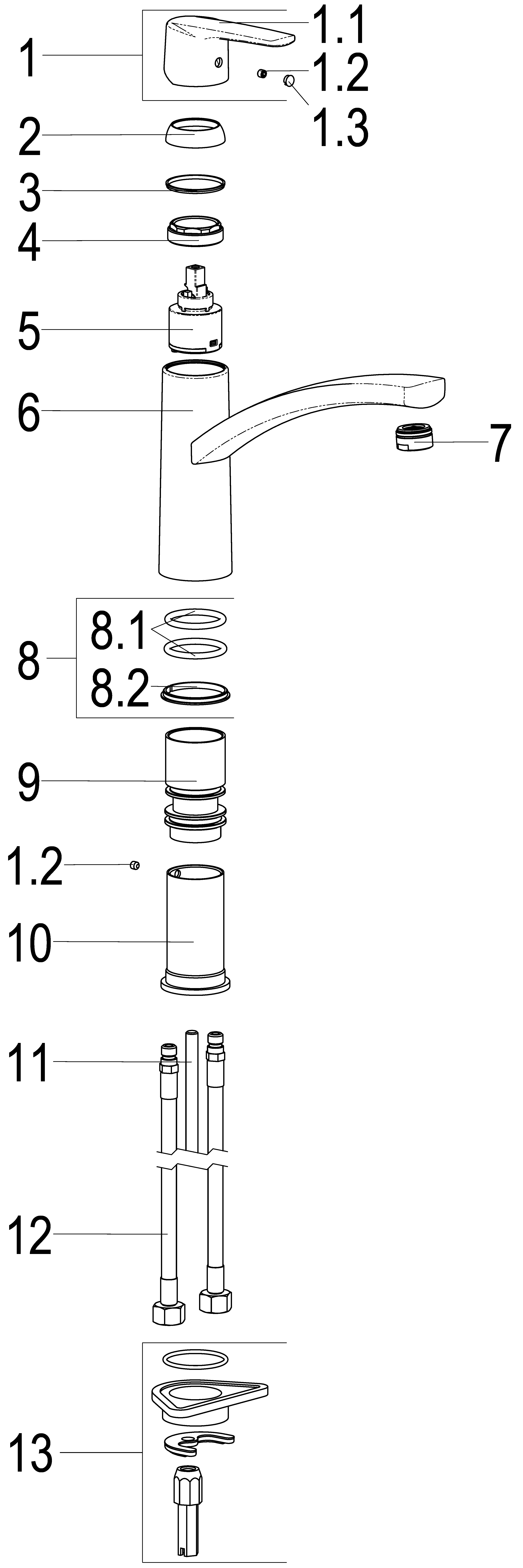 with hot water limiter - spout swivelling