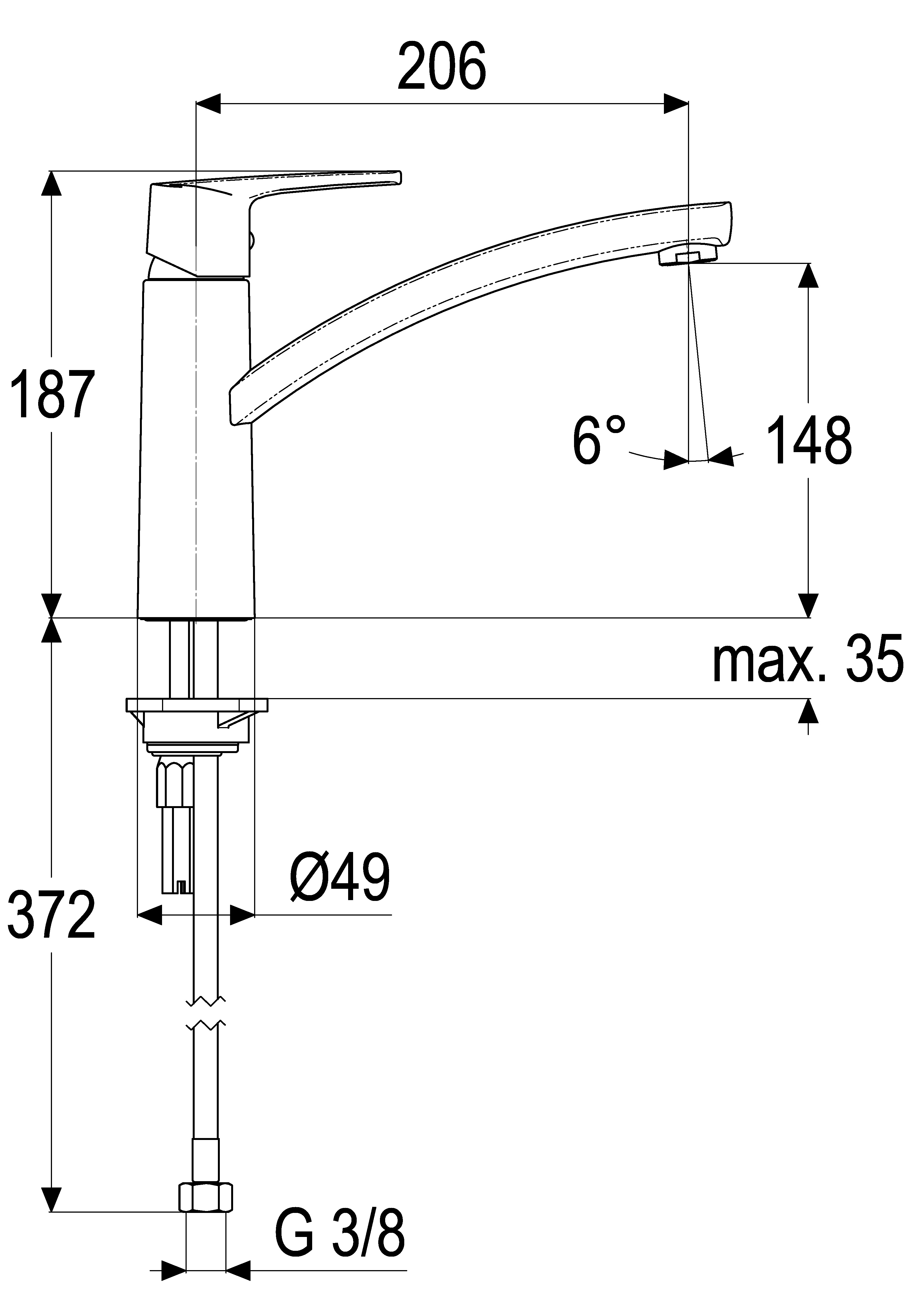 - height to aerator 150 mm