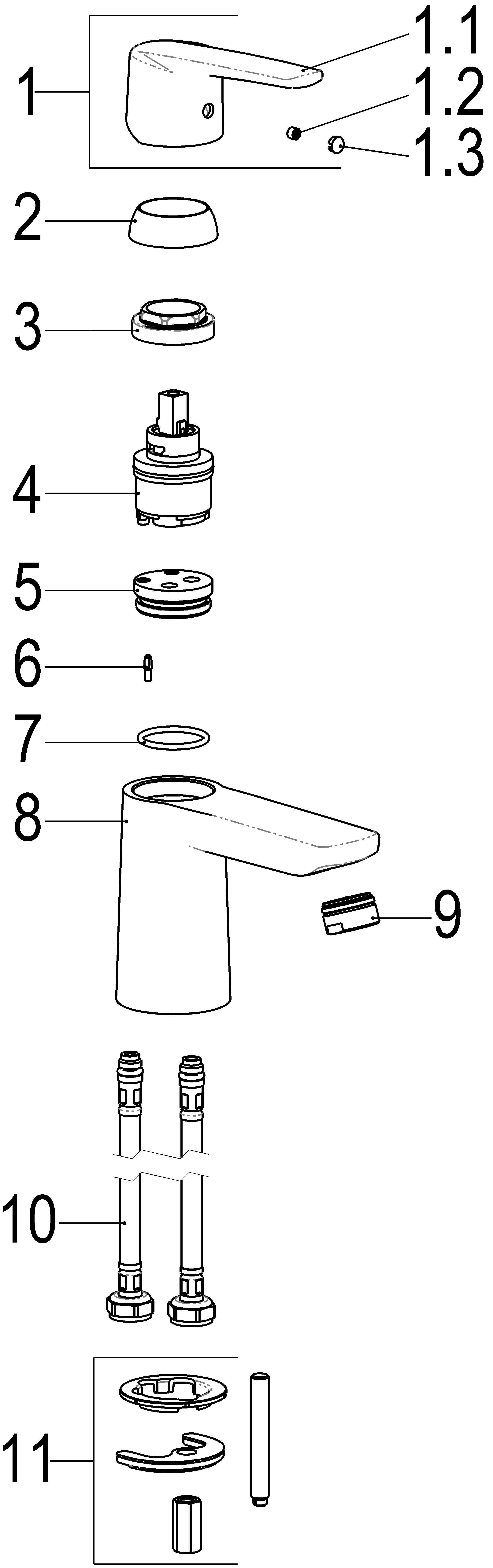 with hot water and flow rate limiter - materials in accordance with German Drinking Water Regulations and FEA