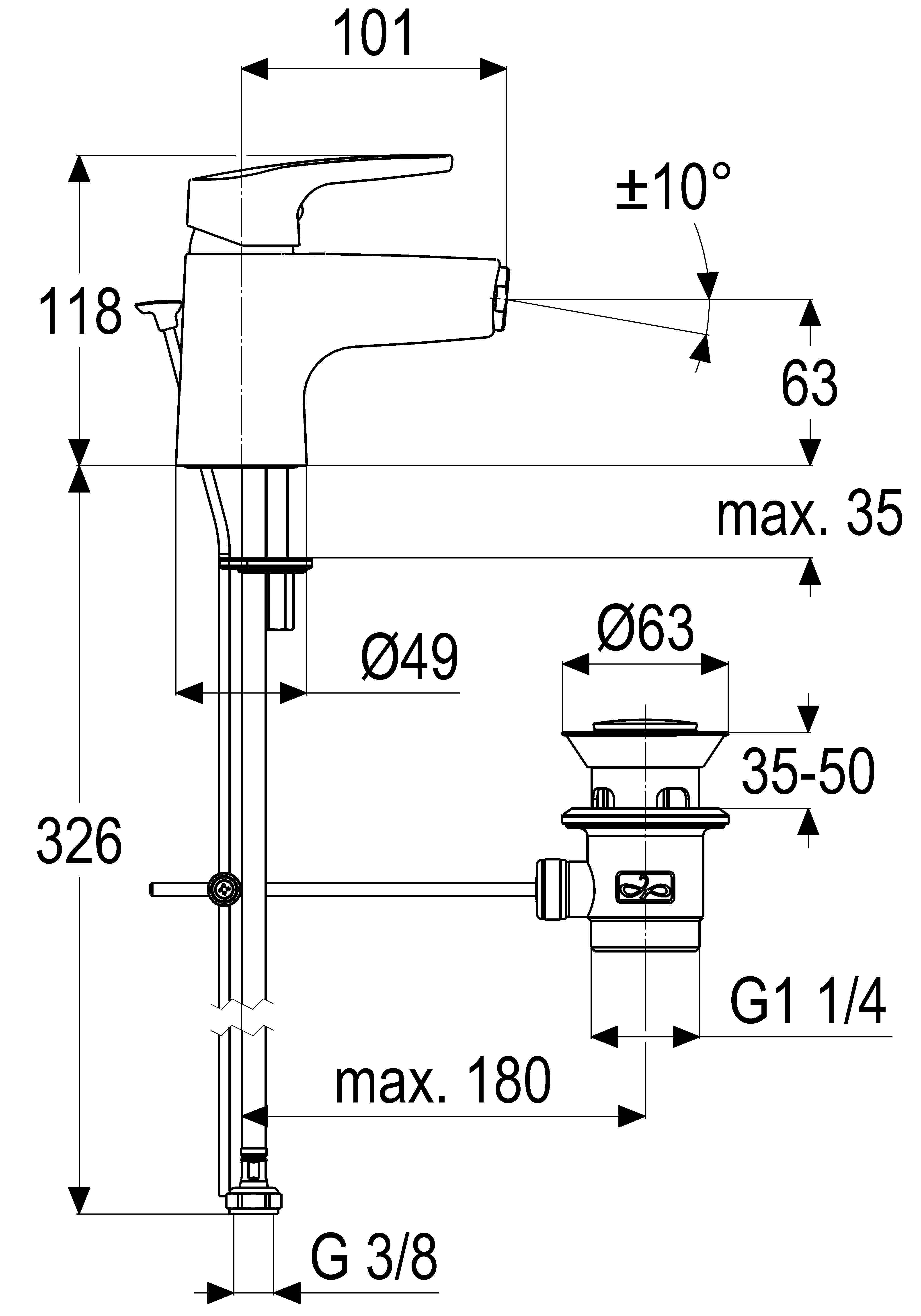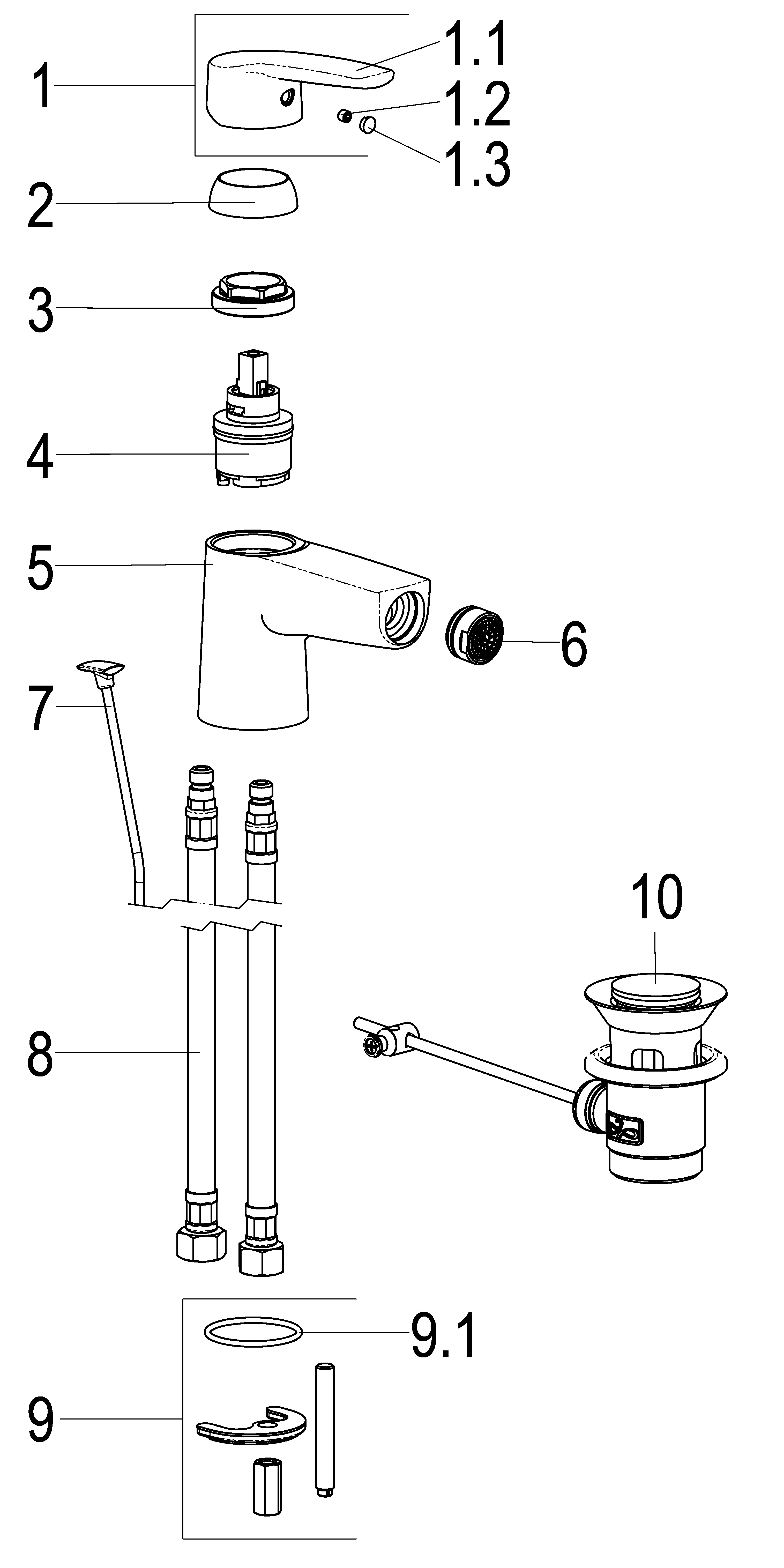 with hot water and flow rate limiter - materials in accordance with German Drinking Water Regulations and FEA