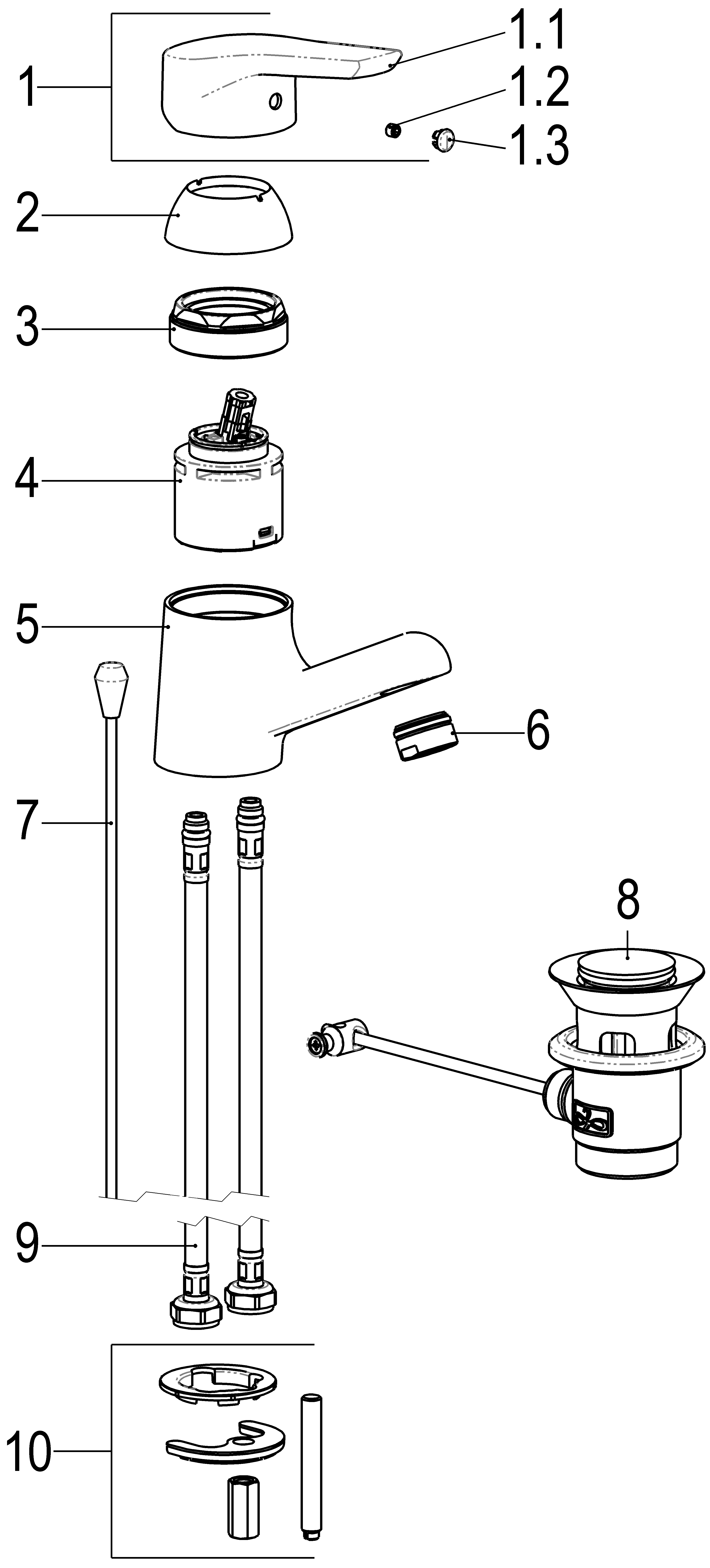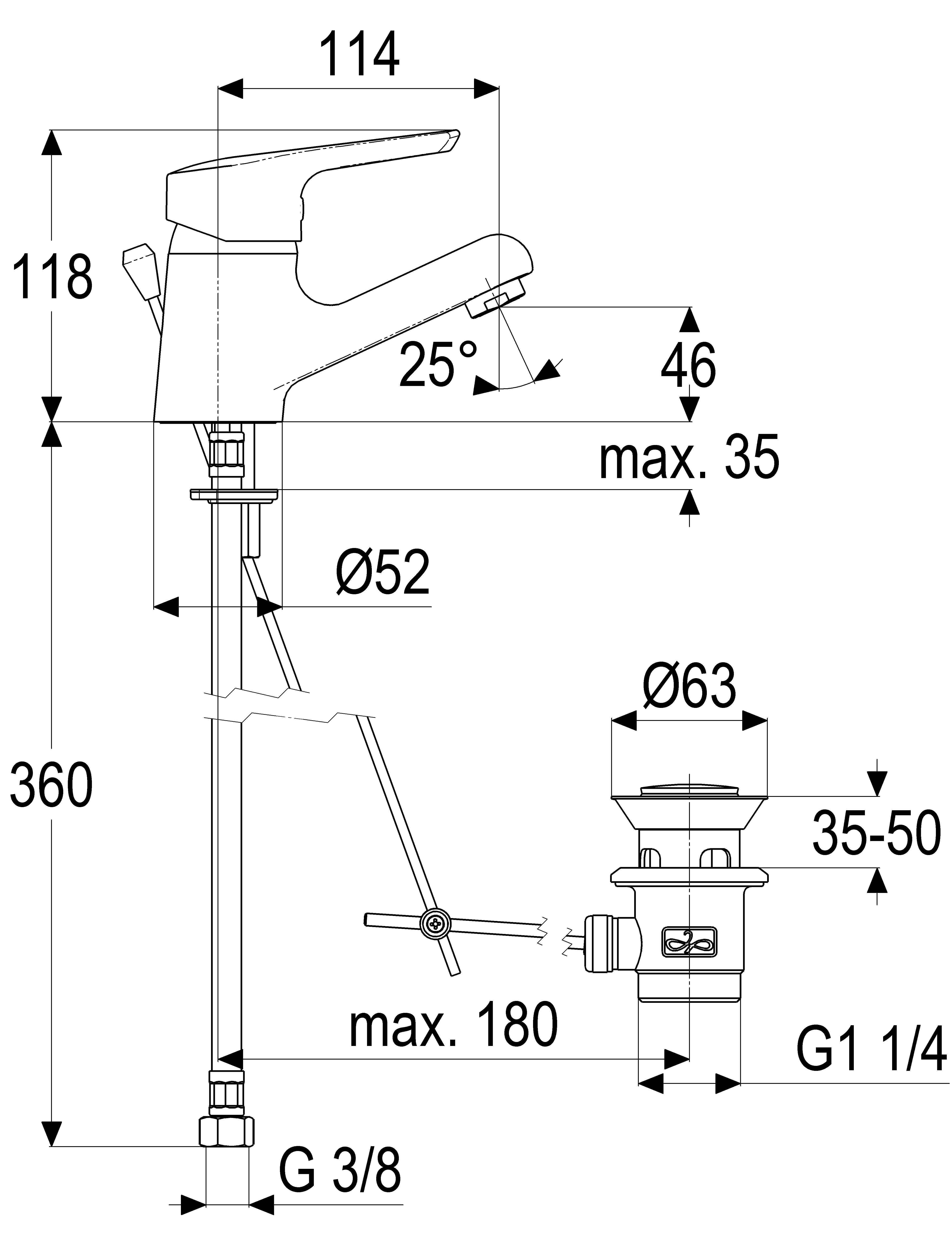 with hot water and flow rate limiter - materials in accordance with German Drinking Water Regulations and FEA