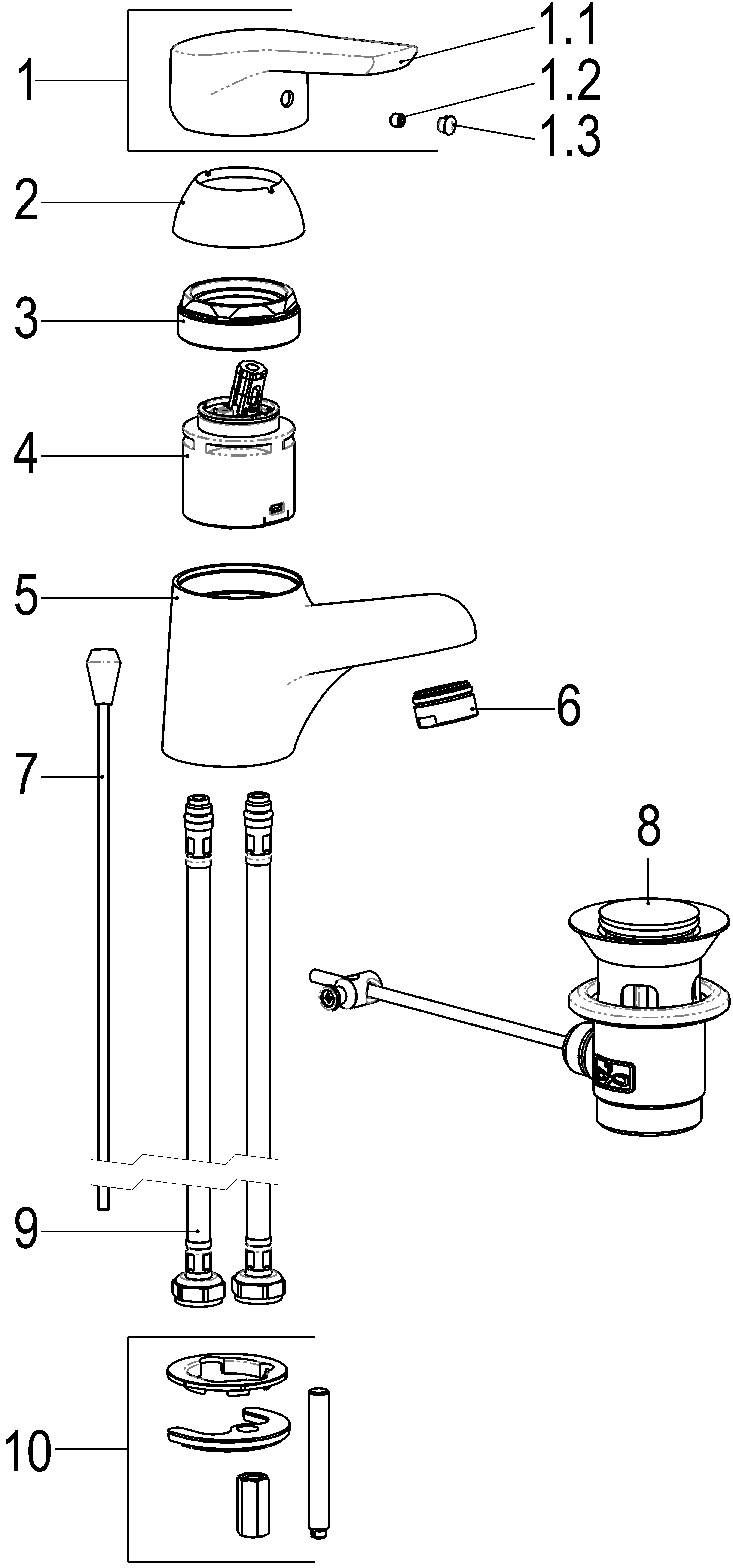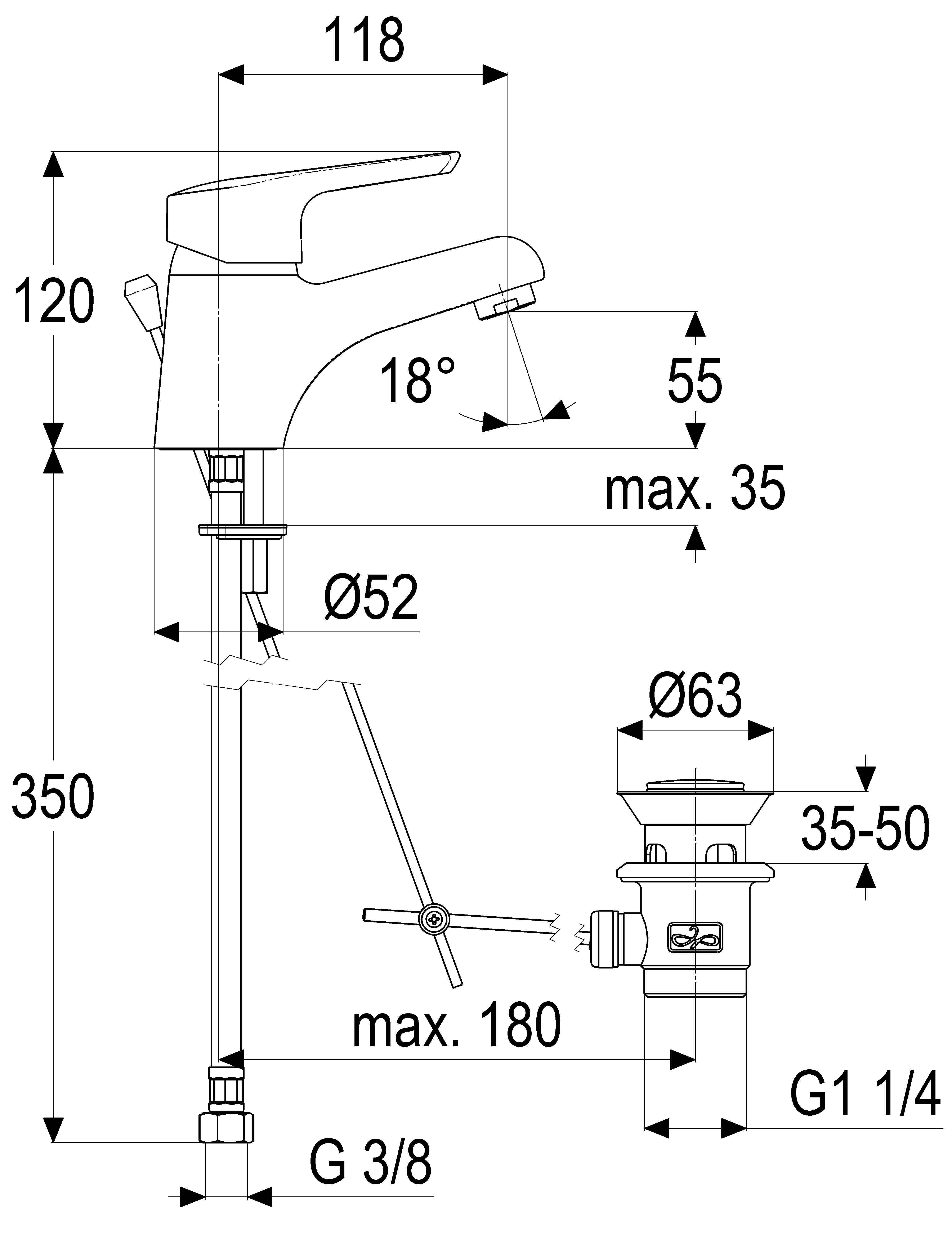 with hot water and flow rate limiter - materials in accordance with German Drinking Water Regulations and FEA