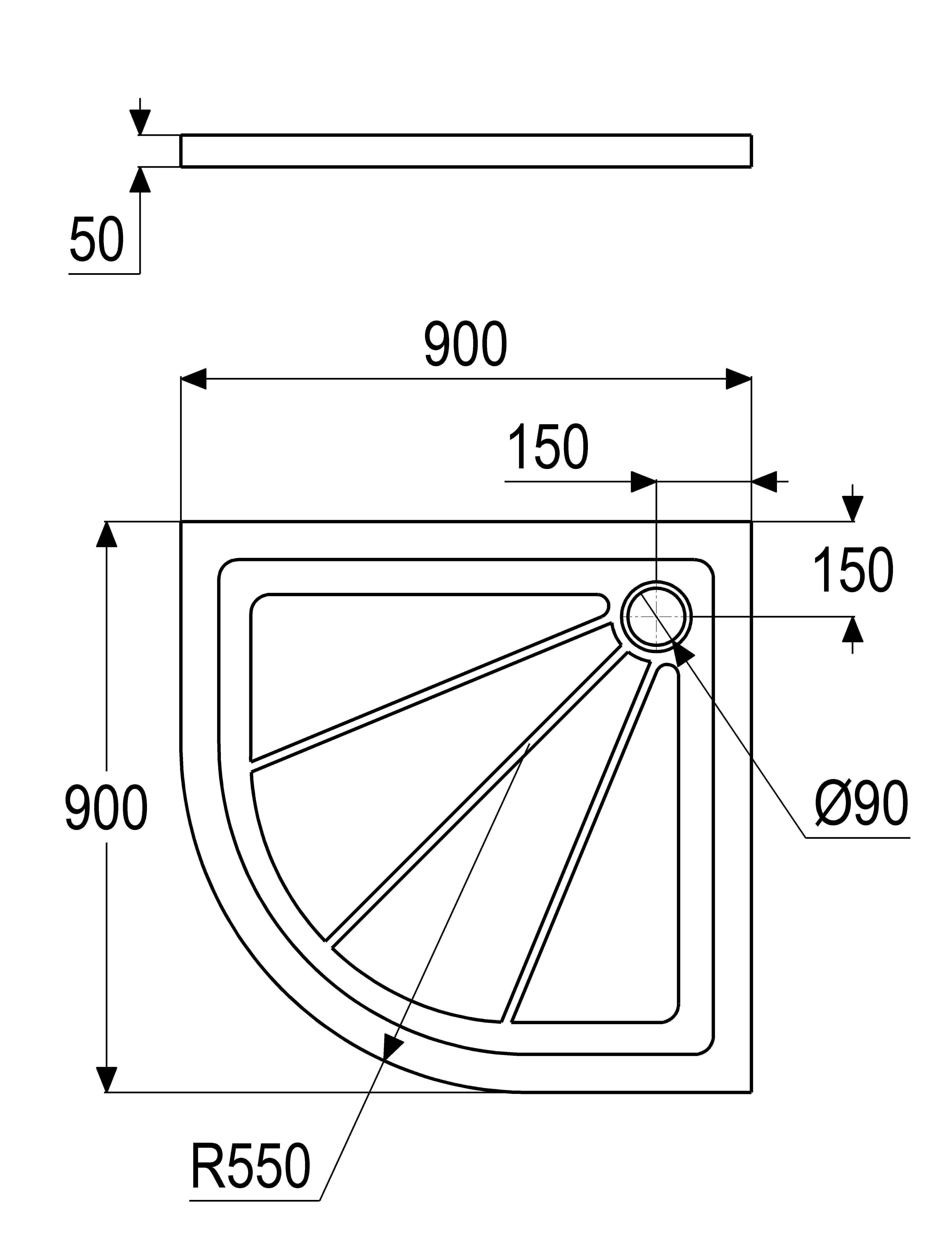 - Semicircular shower tray